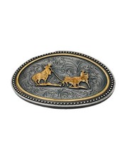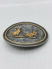 Montana Silversmiths Team Roping Belt Buckle Western Cowboy Steer Rodeo Silver