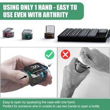 Squeeze sides of the individual to make it pop open. Trying to open the case from the top is incorrect! Why do you need a monthly holder?. - Prevent taking the wrong or skipping doses. - Taking more consistently make the patient feel better, the assistant also will have complete peace of mind!Clever Pop Out DesignJust pressure sides of the little to make it pop open, without use 2 hands.