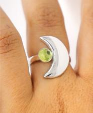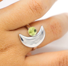 Moon Ring with Peridot Adjustable• Sterling Silver Crescent Ring • Boho Ring