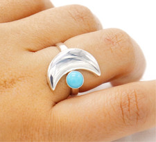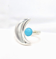 Moon Ring with Turquoise Adjustable• Sterling Silver Crescent Ring • Boho Ring