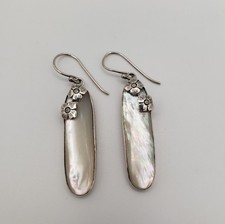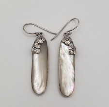 Mother Of Pearl Sterling Silver Long Oval Drop Earrings Native American Style