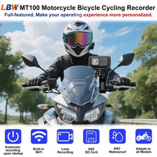 MT100 Motorcycle Dash Cam 2K HD Bike Bicycle Recorder 140° Wide Angle APP 64GB.