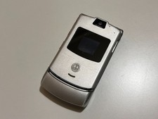Item: Motorola V3 Silver. Includes Battery. Sold strictly for parts or repair only. Not tested in any way. May have cracks or missing parts. Device has scratches and signs of wear.