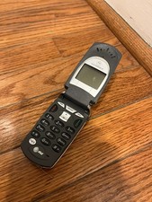 Vintage Motorola flip cell phone branded for AT&T Wireless. Classic early 2000s era flip phone with external antenna and monochrome display. Great collectible piece for retro tech enthusiasts or prop use. Model number not confirmed. Please review photos for exact cosmetic details. Phone is untested. No charger or battery accessories included beyond what is shown.