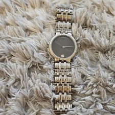 Movado Swiss Made Quartz Wristwatch Silver Stainless Steel Black Dial