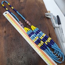 Multi-Strand Blue Yellow Seed Bead Necklace African Tribal Style Patterned Beads