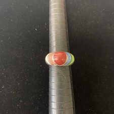 Multistone Sterling Silver Southwestern Style Ring Size 7 Coral, Turquoise, MOP