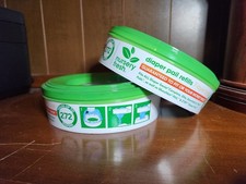 Nursery Fresh diaper pail refill bags – 7-layer design. Manufacturer states each refill holds up to 272 newborn-sized diapers. According to the packaging, these refills fit all Diaper Genie Complete, Elite, Essentials, and Mini pails, as well as Munchkin pail and Step diaper pails. Please confirm compatibility with your specific model prior to purchase. Condition: Brand new, never used. Refill container is not factory sealed. Item has not been installed or used in a diaper pail. Packaging may show minor handling or shelf wear.