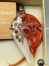 Murano Glass Jagged Leaf Pendant Orange White Venetian Glass (M3)