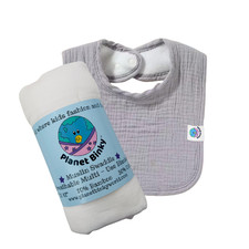 Muslin Cotton Drool Bib and Muslin Swaddle Set Gray and White