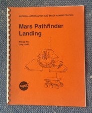 Press Kit from NASA for Mars Pathfinder Landing July 1997. Heavier bond covers with plastic spiral binding. 42 pages of text and illustrations. Good condition. Slight edge wear but no holes, tears or stains.