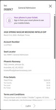 Come spend a weekend at Phoenix Raceway. Camping (1) and Infield passes (4)