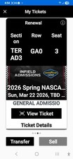 March 22nd NASCAR race in Darlington. two grandstand seats in the Pearson Tower, right in turn four with a great View of Pitt Road entrance and finish line. along with an infield admission. Great deal.