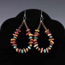 KEWA SPINY OYSTER & TURQUOISE EARRINGS BY JEANETTE CALABAZA. Kewa artist Jeanette Calabaza handcrafted these lovely earrings out of Turquoise, Spiny Oyster, and Olive Shell. These earrings will look fabulous with any outfit.
