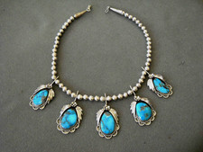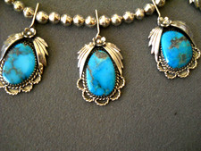 Native American Navajo Morenci Turquoise Sterling Silver BenchMade Bead Necklace