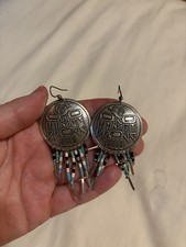 Native American Style Dangle Drop Earrings Silver Turquoise Beaded Metal Hook
