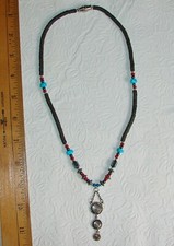 Native American Style Pendant 20" NECKLACE, Heishi Shell & Glass Beads, B16