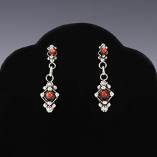 NATIVE AMERICAN ZUNI STERLING SILVER & CORAL EARRINGS BY VERDIE BOOQUA