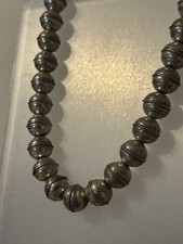 A nice set of Native made pearls, this is a nice choker size. 15” or you can add an extender and make them longer. As they are vintage they have patina and light dents.
