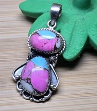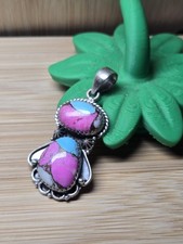 The Native Southwestern Kingman Cotton Candy Sterling Pendant is a unique and handmade piece of jewelry that showcases a Southwestern design. The pendant features a colorful Cotton Candy material set in 925 sterling silver, creating a vibrant and eye-catching piece. With its origins in the United States, this pendant is a statement of authenticity and craftsmanship, perfect for those who appreciate Southwest jewelry styles. Measures: 1.75" x .75" Closed back My page has more Southwest and Native American.