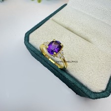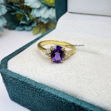 Natural Amethyst Ring, Three Stone Ring, Birthstone Ring, 925 Sterling Silver