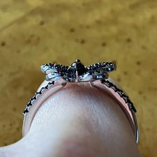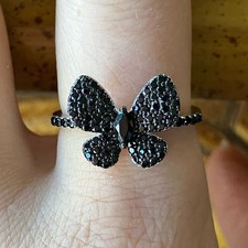 Natural Black Spinel Sterling Silver Butterfly Ring Size 9