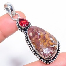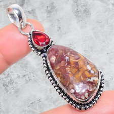 Natural Crazy Lace Agate, Garnet Gemstone 925 Sterling Silver Pendant 2.5" e341