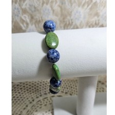 Natural Jade and Iolite Stone Bracelet 7.25"