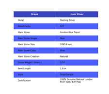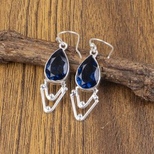 Natural LONDON BLUE TOPAZ Sterling Silver Handmade December Birth Drop Earrings