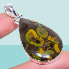 Natural Rhyolite Jasper Gemstone 925 Sterling Silver Pendant 2.2" n384