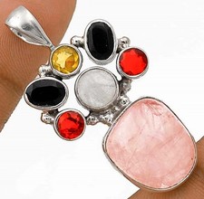 Natural Rose Quartz Madagascar & Moonstone 925 Sterling Silver Pendant