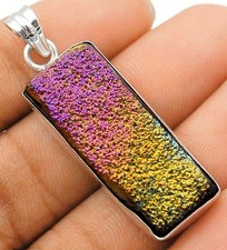 Natural Titanium Druzy 925 Solid Sterling Silver Pendant Jewelry