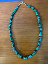 Natural Turquoise Nuggets with Polished Garnet and Silver Plate Clasp. It is 18" long. (stone in main pic not included)