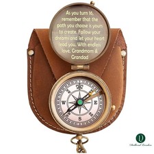 Nautical Brass Engraved Compass Personalised 16th Birthday Compass with Case