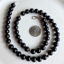Navajo Mens Black 10mm Onyx Bead 21.5” Necklace 925 Sterling Silver