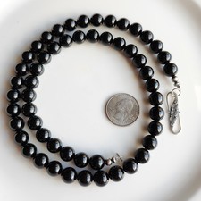 Navajo Mens Black 10mm Onyx Bead 24” Necklace 925 Sterling Silver