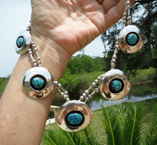 Navajo Multi GEM Grade Spiderweb Turquoise Shadowbox Sterling Necklace 18.5"L