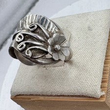 Feather and flower design that wrapped around the finger. Marked sterling with a makers mark.