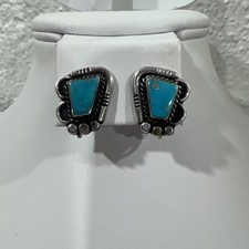 Navajo Signed Turquoise Sterling Pierced Post Earrings Bennie Ration