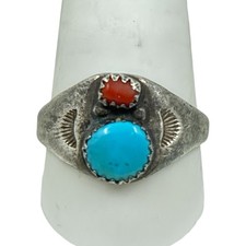 Navajo sterling silver turquoise & coral ring - GM603