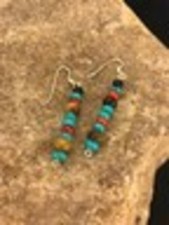 These handmade earrings with multiple stones, Blue turquoise, Coral and Tigers Eye in Sterling silver has a beautiful classic design.