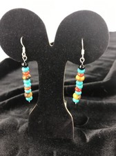 These handmade earrings with multiple stones, Blue turquoise, Coral and Tigers Eye in Sterling silver has a beautiful classic design.