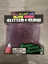 Nee Doh Nice Cube Glitter & Glow 2.5" Super Solid Squish! Purple Color.