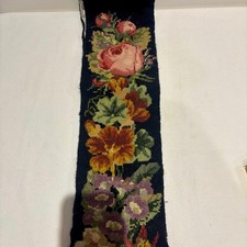 This antique needlepoint tapestry wall hanging is a beautifully handmade piece featuring a multicoloured design, perfect for adding a touch of artistry to any room. 121 x14.5cm.