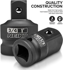 The durable NEIKO 30223A 8-piece impact socket conversion adapter and reducer set. These tools adapt to the situation on the fly to get it done. Ball detent securely holds sockets on the coupler. Versatile set can be used on breaker bars, ratchets, cordless ratchets or impact drills.Set Includes:4 Reducers:3/4 in.