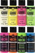 CONVENIENT SIZES - This versatile glowing and neon acrylic paint set includes 8 - 2 oz bottles of vivid, colorful and glowing craft paint. The colors in this kit include: four neon colors: neon pink, neon orange, neon blue, neon green and four glow in the dark colors: neutral glow, green glow, yellow glow, and pink glow.