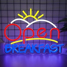 Neon Sign Dimmable Restaurant Neon Lights for Wall Decor USB Open Breakfast