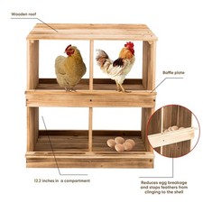 Clean and Secure for EggsThe wooden chicken nesting boxes is designed with perches and baffles that not only prevent eggs from rolling away, but also avoid them broken by any other attacking. Weather Proof.