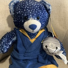 Featuring a blue starry night fur pattern and wear a blue robe with yellow pants ,accompanied by a plush bell 16 inches tall