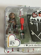 The New Disney ily 4ever Tote Teenies ily I❤️Jack Skellington Christmas/Holiday Doll is a 2" mini doll featuring Jack Skellington from The Nightmare Before Christmas. This plastic doll has red hair, purple eyes, and a medium dark complexion. It is part of the ily 4ever Tote Teenies set, perfect for collectors and fans of Disney franchises. This single unit doll is an original release from JAKKS Pacific in 2025, ideal for Christmas and holiday celebrations.